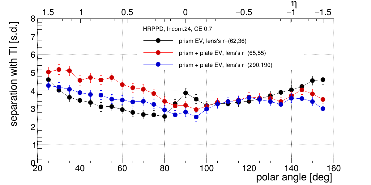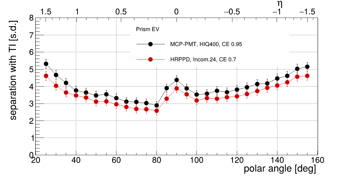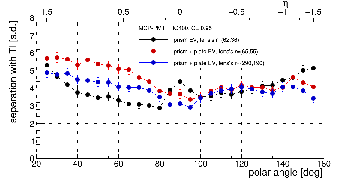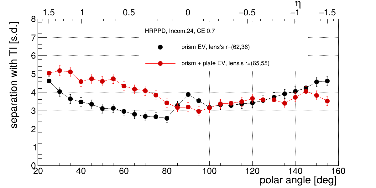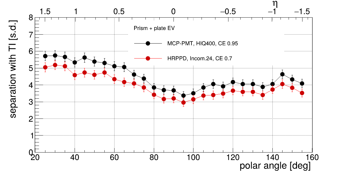 Updated performance plots for hpDIRC. Comparison to "prism + plate" EV. 15.10.25