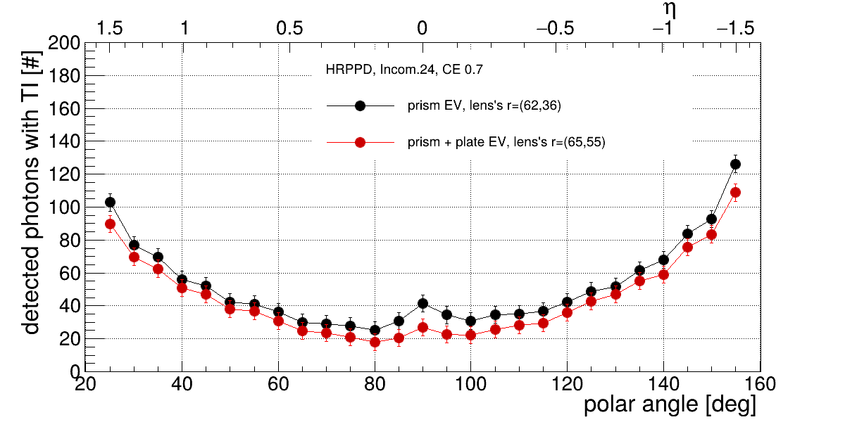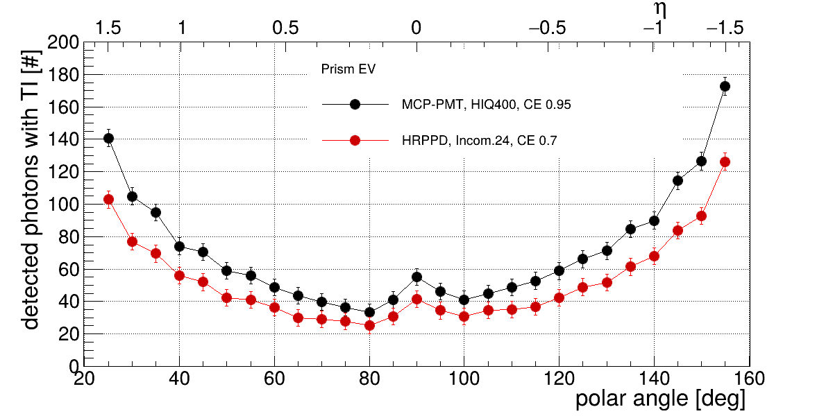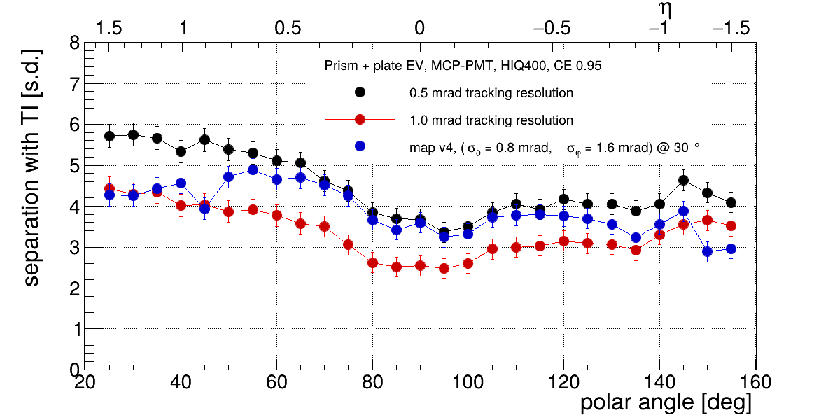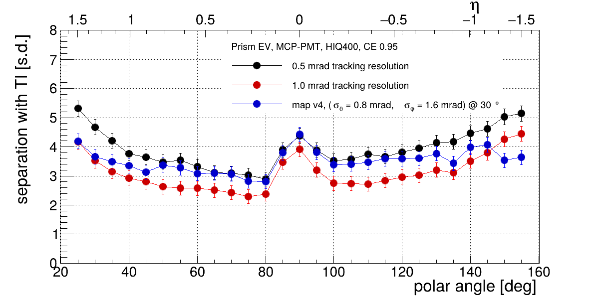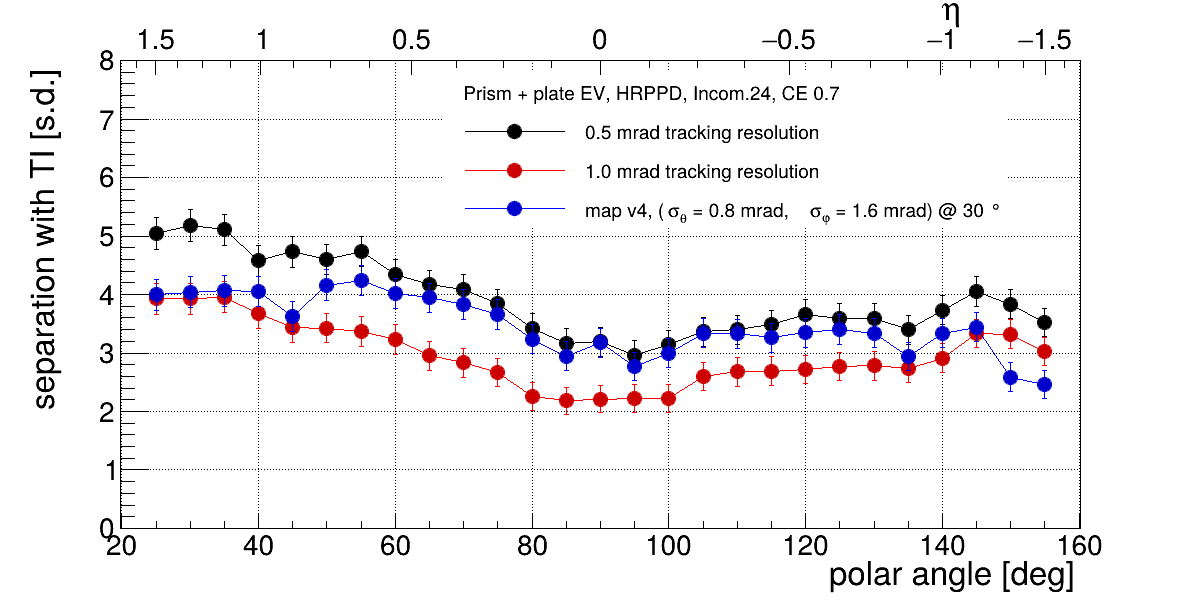 Updated performance plots for hpDIRC. Comparison to "prism + plate" EV. 15.10.25