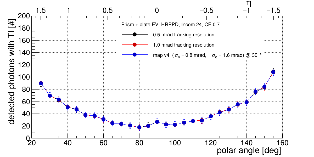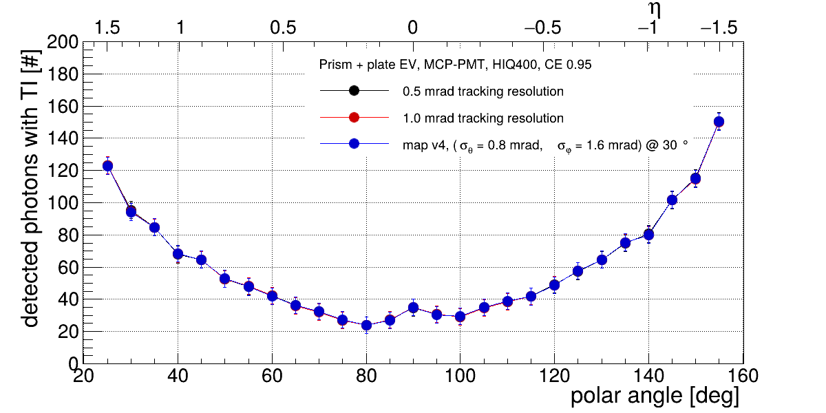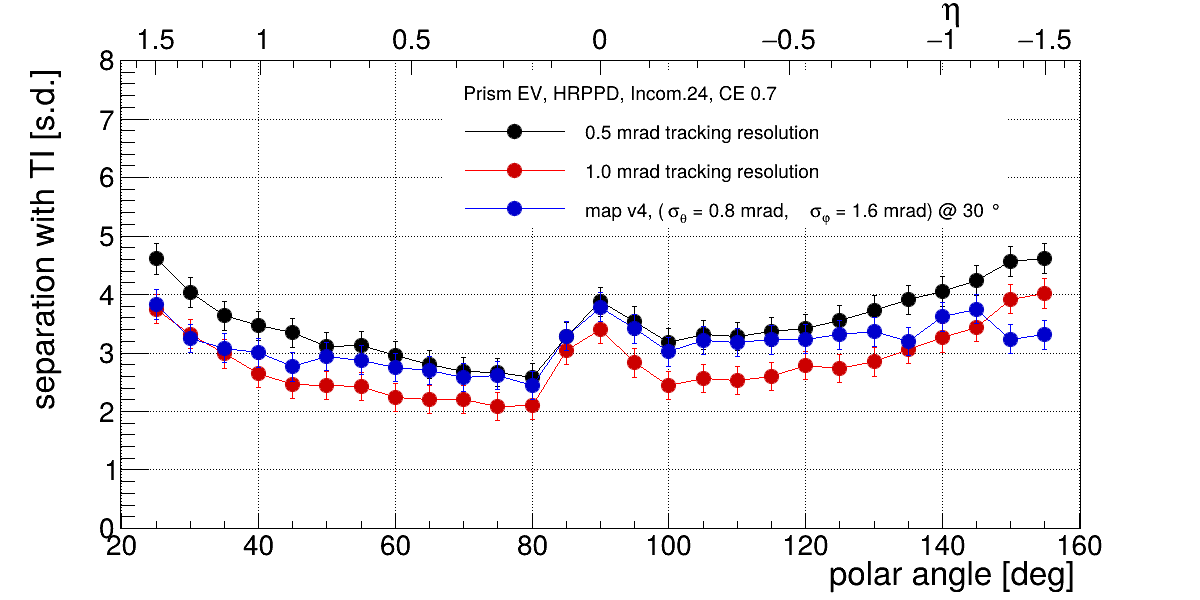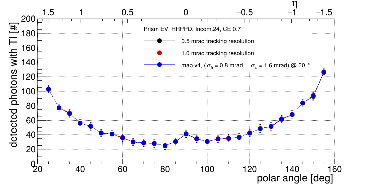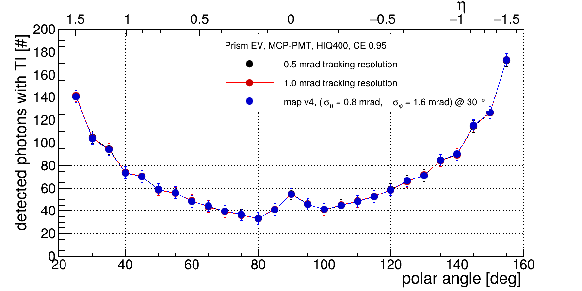 - 0.5 mrad tracking resolution, unless labeled otherwise