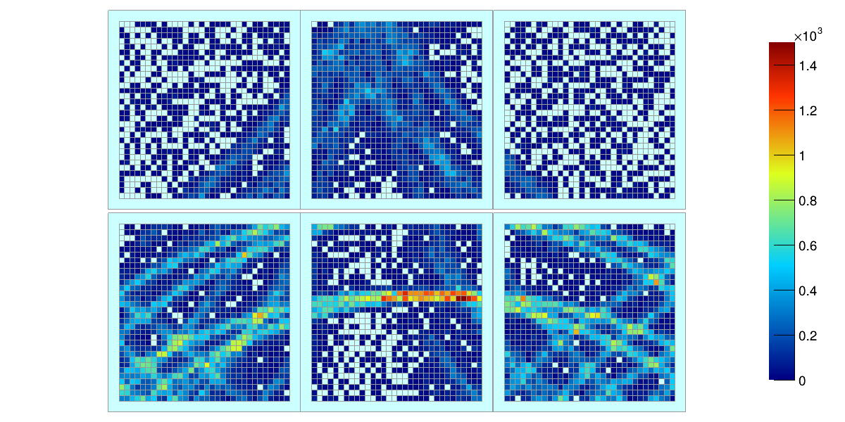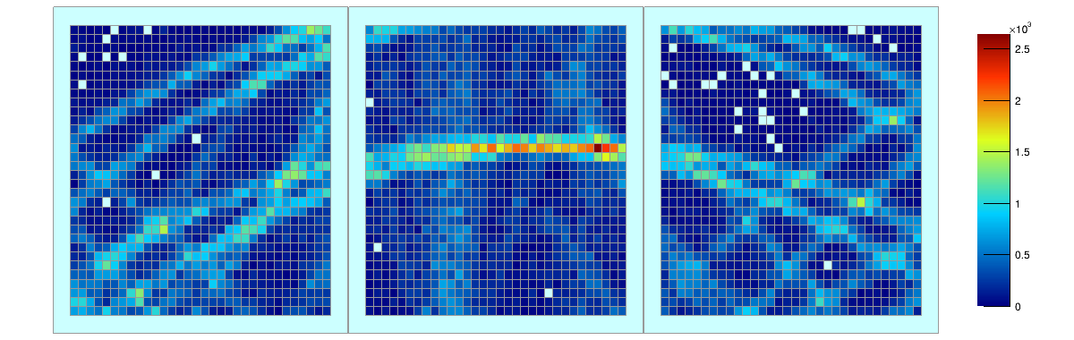- 2x3 layout; 32x32 pixels HRPPD Incom.24, CE=70%; 100 ps time precision