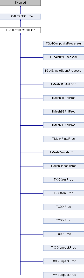Inheritance diagram for TGo4EventProcessor:Public Member Functions | |