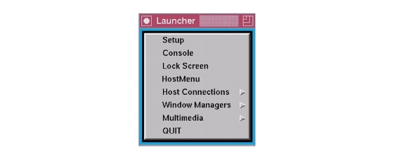 The Client Launcher starts the local client you select from a menu. An arrow to the right of an entry indicates a submenu. In Figure 2-4, selecting Host Connections displays a submenu listing available host connections, such as Telnet or Cterm.