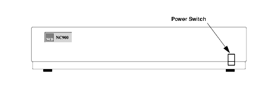 The first step is to power on your network computer. For network computer models with a separate logic module, power on both the display and the logic module. Figure 2-1 illustrates the location of the power switch for the NC900 series base.