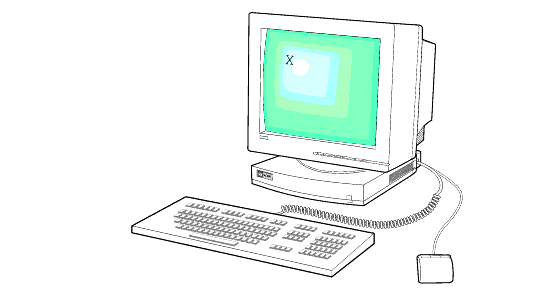 The root weave is a gray, patterned screen available on all network computers. When the network computer is ready for input, an X-shaped cursor appears on the screen. A network computer with the root weave and cursor is illustrated in Figure 2-3.