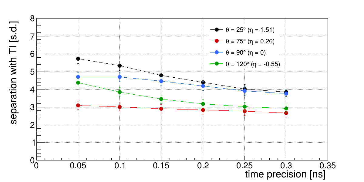 pi/K @ 6 GeV/c, for different time precision (with 0.5mrad tracking):